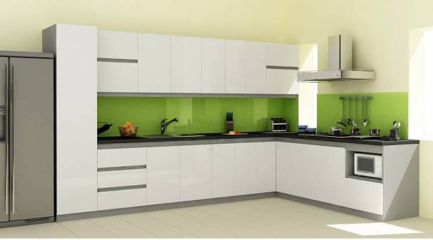 Kính ốp bếp cường lực màu xanh lá thuận phong thủy